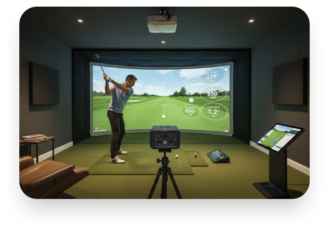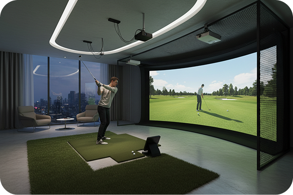 aboutGOLF Simulators excel beyond golf simulation, serving as complete home entertainment centers. Systems integrate with PlayStation and Xbox gaming, streaming services, and home theater setups. Picture-in-picture functionality allows simultaneous golf play and sports viewing, while our Multisport sensor add-on enables baseball, football, and other activities.